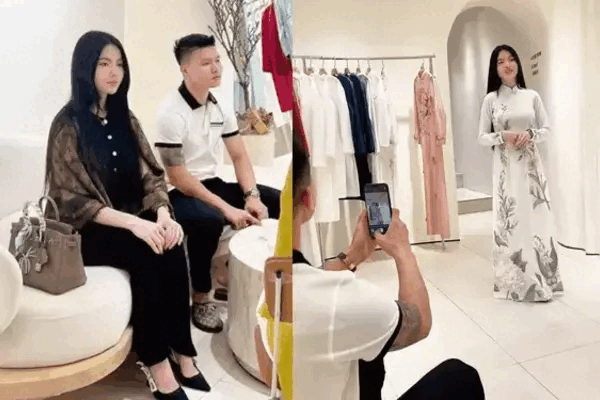 Mẹ Quang Hải vui vẻ đi chọn áo dài