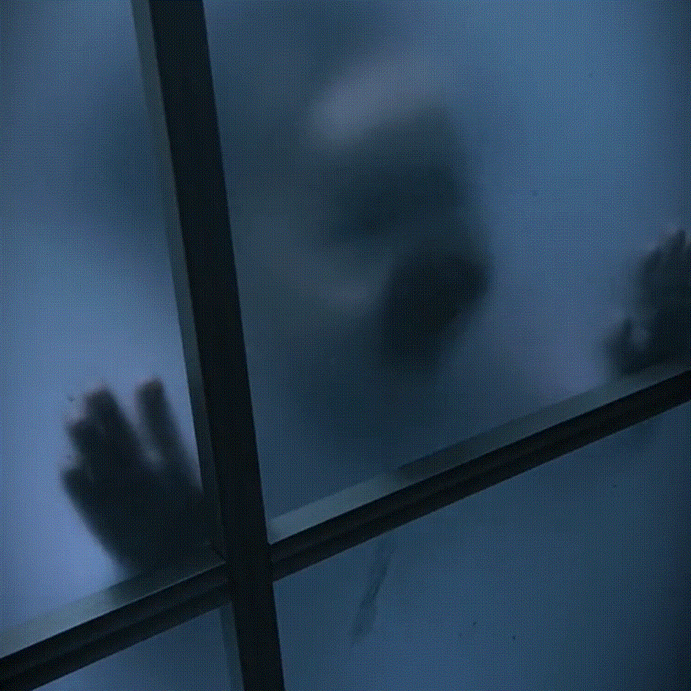 Đó là một khuôn mặt và đôi bàn tay mờ ảo sau tấm kính. Sau đó cánh cửa từ từ mở ra, một gương mặt nhỏ bé quen thuộc thò vào bên trong. Hóa ra là con gái của chị đã thức dậy nên chạy vào nhà vệ sinh tìm mẹ.