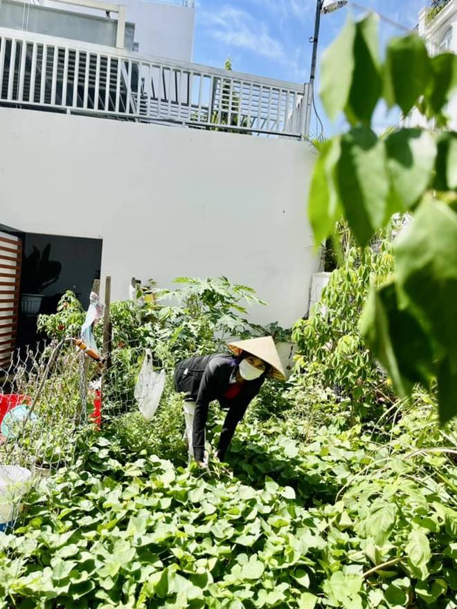 Hình ảnh vô cùng giản dị của mẹ ruột Hồ Ngọc Hà khi làm vườn. Tại mảnh đất bỏ trống của con trai ở cạnh nhà tại Thủ Đức, bà đã gieo trồng nên khu vườn xanh tốt.