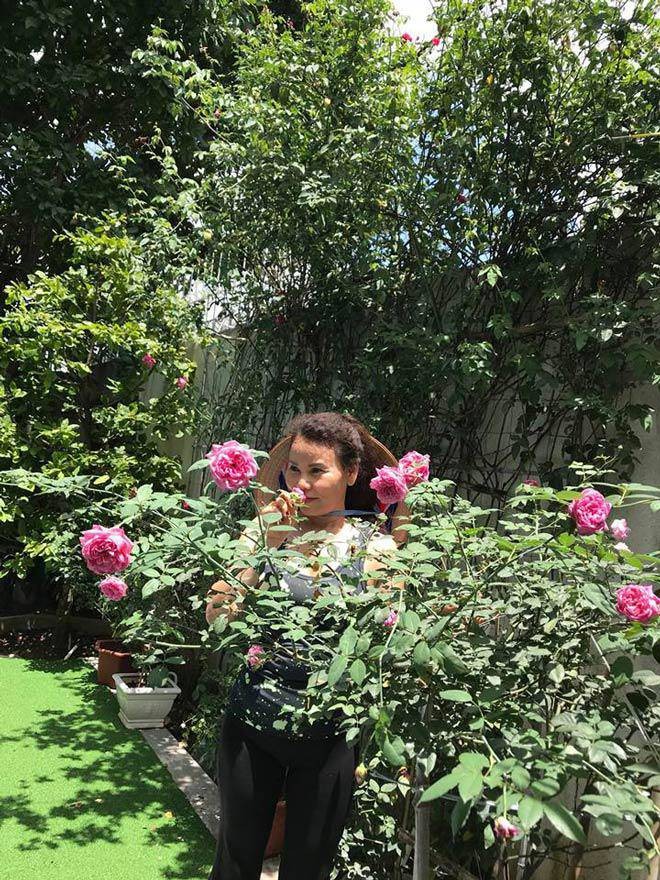 Bên cạnh hoa và cây ăn trái, bà cũng thích trồng hoa, tạo nên khu vườn xinh đẹp với những loài hoa xinh xắn như hoa hồng.