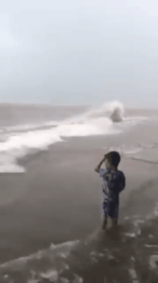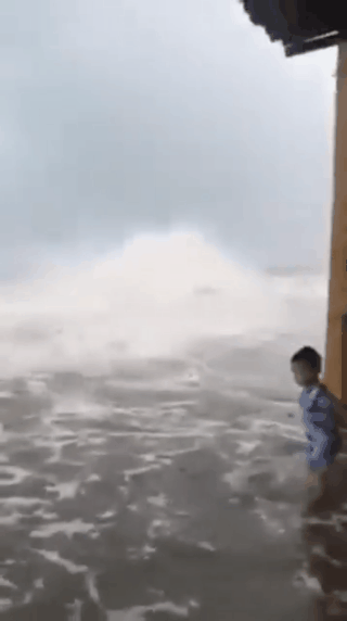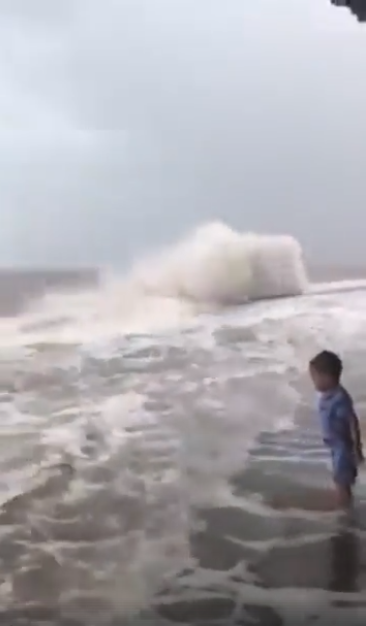 Trong tình hình bão gió nguy hiểm như vậy, nhưng trên mạng xã hội mới đây lại xuất hiện đoạn clip ngắn ghi lại cảnh 1 bé trai chừng 4 - 5 tuổi đứng nghịch nước gần bãi biển được cho là ở Quất Lâm, Nam Định.