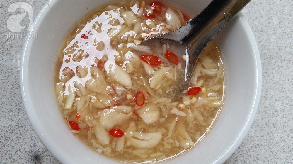 Hành, tỏi bóc vỏ, rửa sạch rồi giã dập. Ớt thái lát hoặc băm nhỏ. Pha mắm cùng các gia vị vừa khẩu vị cả nhà gồm đường, chanh rồi khuấy đều.