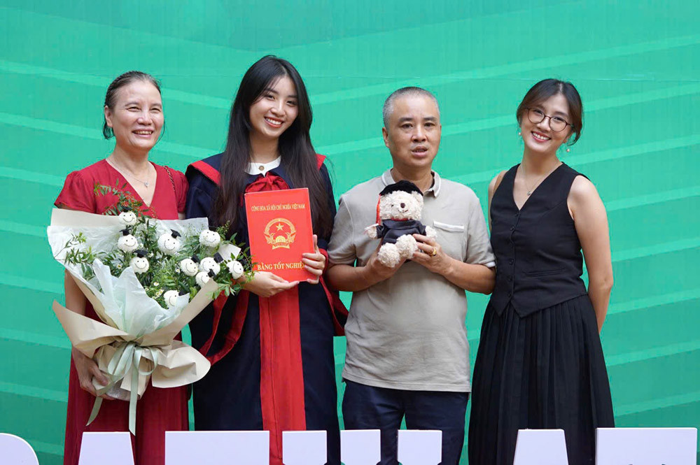 “Mẹ tiến sĩ, chị gái 2 bằng thạc sĩ, em gái làm bác sĩ. Bố giữ vững danh hiệu đẹp trai nhất nhà”, dòng chia sẻ của Quỳnh Anh kèm theo tấm ảnh gia đình chụp trong dịp cô nhận bằng tốt nghiệp từng “gây bão” mạng xã hội cách đây không lâu.