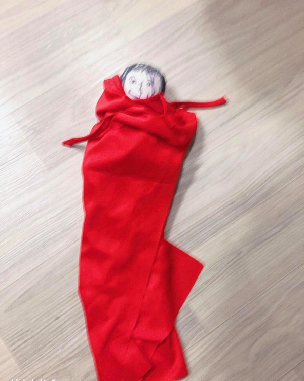 Theo đó bà mẹ trẻ kể lại: "Con mình mới 3 tuổi, đi học cô giáo cho trang trí búp bê kiểu này, lại còn bọc vào mảnh vải đỏ, gửi về nhà. Đến tối mình mở cặp con ra mà hết hồn nên gọi điện thoại hỏi cô giáo. Cô giáo bảo: "Hôm nay các bé được thử trang trí và thiết kế trang phục dành cho búp bê! Bé nào cũng rất vui và hào hứng!" Ok! Mẹ của bé cũng rất vui cô nhé!".