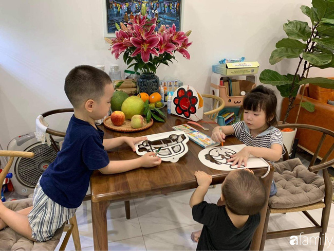 Bọn trẻ nhà chị Mi còn được tô màu để làm đèn lồng.
