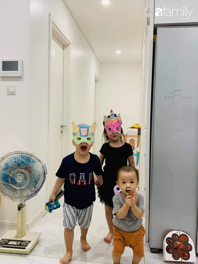 Thấy những con vật có phần là lạ nên 3 đứa trẻ nhà chị Mi nhìn mâm cỗ Trung thu với ánh mắt thất thần, đầy khó hiểu, có lẽ các bé đang tự nghĩ không biết đây là những con vật gì.