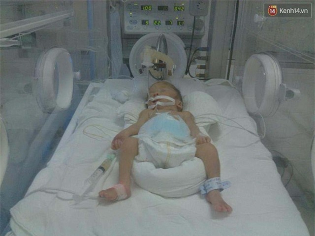 Con trai chị Trâm hiện đang được các bác sĩ tích cực theo dõi. |