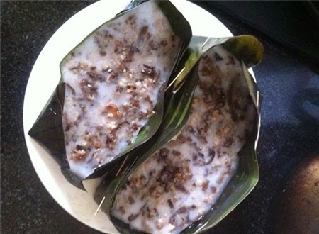 Bánh có kích thước lớn, được đặt trong những chiếc thuyền lá mỏng manh mà dẻo dai