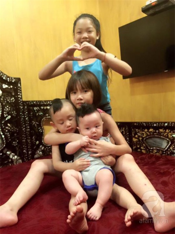 Bận rộn là thế nhưng thực ra hai cô con gái đầu của mình rất đảm đang, các bé đã có thể giúp đỡ bố mẹ làm một số việc nhà và chăm sóc hai em trai. Đây cũng là lý do khiến vợ chồng mình dù bận trăm công nghìn việc song vẫn không quá vất vả.