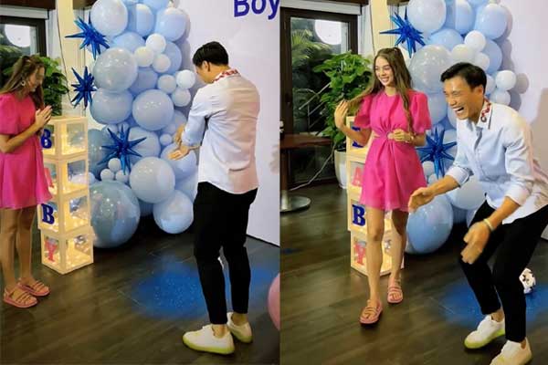Hình ảnh cặp đôi trong bữa tiệc tiết lộ giới tính con.