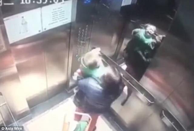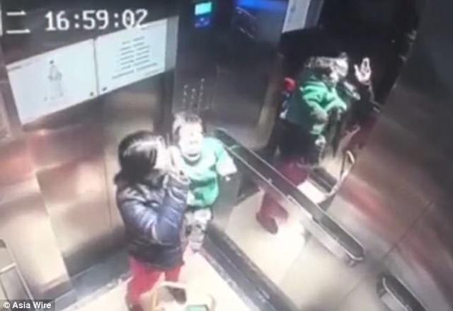 Theo đoạn clip được trích xuất từ máy quay, người mẹ đã trao đứa con trai chỉ khoảng hơn 1 tuổi cho người giúp việc đang đứng ở thang máy rồi vẫy tay chào tạm biệt. Nhưng khi người mẹ vừa quay đi và cửa thang máy đóng lại, người giúp việc đã ngay lập tức thay đổi thái độ.