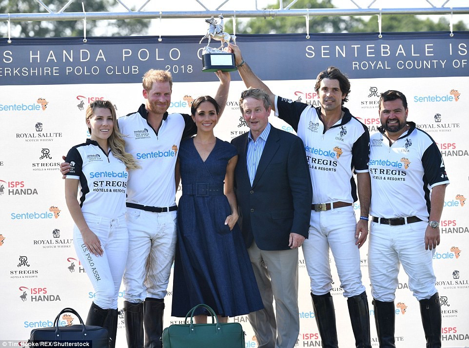 Dù xuất hiện bất ngờ nhưng nữ công tước xứ Sussex được chọn để trao giải cho đội của Hoàng tử Harry sau khi đội anh giành chiến thắng. Lúc đứng lên sân khấu trao cúp, cô không ngần ngại quay ra trao cho chồng nụ hôn ngọt ngào và cười tươi chúc mừng anh, bất chấp quy tắc hoàng gia cần hạn chế thể hiện tình cảm nơi công cộng.