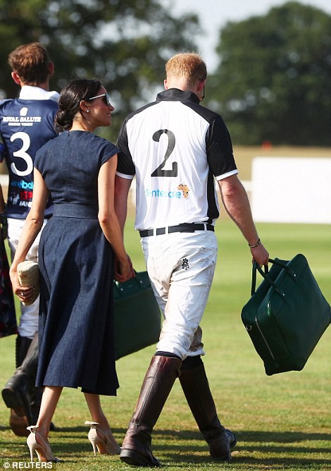 Trận đấu polo hôm qua diễn ra ở Berkshire là hoạt động gây quỹ hàng năm, ngoài Meghan còn có sự góp mặt của ngôi sao bóng bầu dục Mike Tindall, chồng của Zara Philip (cháu gái Nữ hoàng Anh).