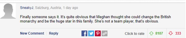 Lời nhận xét gây sốc của bà Stefanie Powers đã thu hút sự chú ý của giới truyền thông và người dùng mạng. Thay vì phản đối, đa phần mọi người đều cho rằng Stefanie Powers đã nói lên suy nghĩ của mọi người về Meghan Markle. Nàng dâu hoàng gia này luôn tìm cách phá vỡ cách quy tắc và thích làm những gì theo ý mình thay vì cố gắng hòa nhập với Hoàng gia Anh.