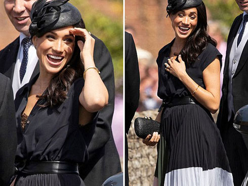 Mặc dù vậy, nhiều người hâm mộ tinh ý nhận ra chiếc váy đen bó sát của Công nương Meghan đã vô tình để lộ ra vòng 2 to bất thường của nàng dâu hoàng gia. Bên cạnh đó, người hâm mộ còn phát hiện Meghan đã thay đổi kiểu tóc với mái tóc suôn thẳng, mượt mà thay vì những lọn tóc bồng bềnh như trước kia.