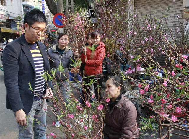 Ngoài ra, khi mua những cành đào được người bán buộc vào xe chở đi, bạn cần vạch cuống ra để kiểm tra cẩn thận xem hoa thật hay giả. Đôi lúc do thời tiết không thuận lợi, đào không nở đúng dịp nên người bán thường gắn thêm nụ, thêm hoa bằng keo dính vào những cành nhỏ để “mập mờ đánh lận con đen”.
