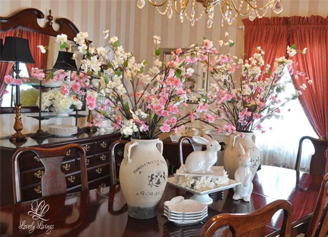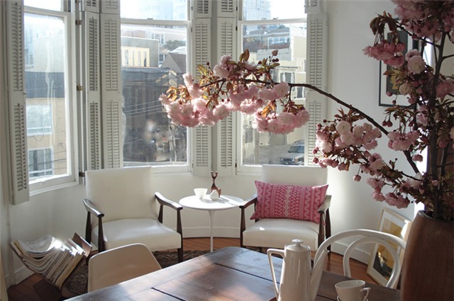 Màu sắc hoa đào nên tương phản với tông màu chủ đạo trong phòng.