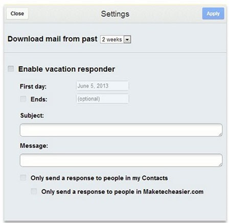 năng tự động trả lời email cho tất cả các email. Khi bạn đang offline,