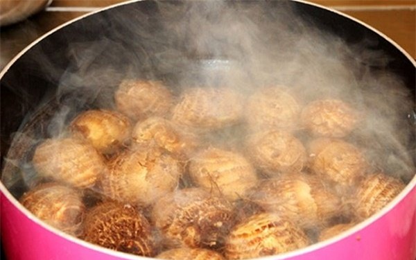 Thường với khoai tây hay khoai lang bạn thường rửa vỏ bên ngoài rồi mới gọt tuy nhiên với khoai sọ thì không nên làm như vậy. Hãy để nguyên đất bám vào khoai. Bạn để tay thật khô rồi gọt vỏ khoai. Gọt xong ngâm khoai vào nước muối loãng 10 phút rồi đổ ra rổ để chuẩn bị chế biến. Lưu ý trong quá trình ngâm khoai không nên cho tay trực tiếp vào khoai.