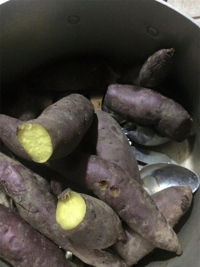 Ngoài ra, để khoai ngọt và đậm vị hơn, thay vì luộc, bạn có thể hấp cách thủy. Cho khoai vào nồi có xửng để hấp, sắp những củ lớn phía dưới, củ nhỏ ở trên, để lửa lớn. Khi nước trong nồi sôi một lúc thì rắc đều lên khoai ít muối, hấp thêm vài phút rồi dùng đũa xiên qua để kiểm tra, khoai chín là được.