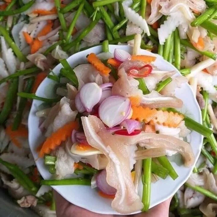 Tai heo giòn sần sật là thành phần quen thuộc trong các món gỏi. Bạn cũng có thể dùng trực tiếp với nước mắm chua ngọt như một cách đổi vị cho bữa cơm gia đình.