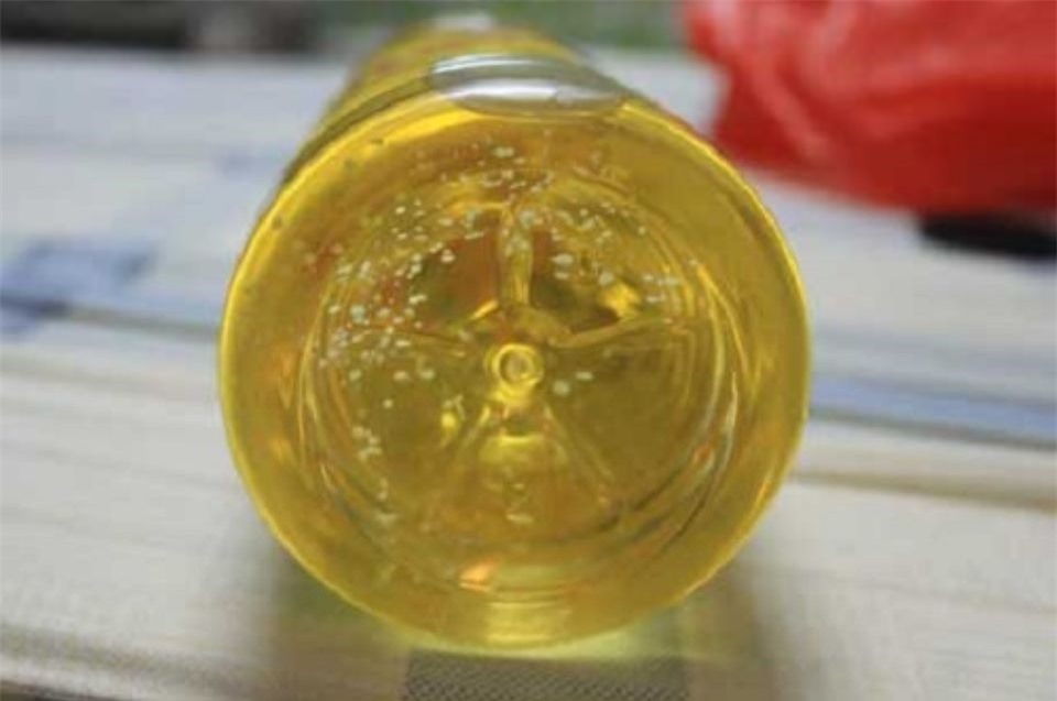 Tuy nhiên, dầu ăn giả có chứa nhiều tạp chất, các chất hóa học khác nhau nên ở dưới đáy chai hay bị lắng cặn, đông đặc, càng xuống dưới càng đặc. Nếu lắc nhẹ, bạn sẽ thấy dầu chảy sệt sệt chứ không trơn tru.