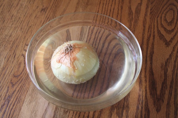 Ngâm và cắt hành trong tô nước rất dễ đứt tay nên hội chị em chưa đảm đừng thử cách này nhé!