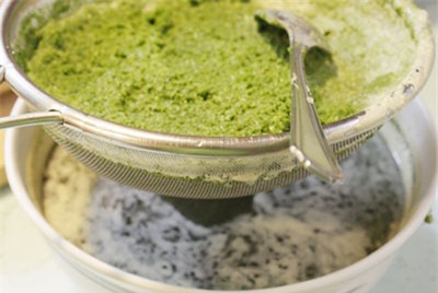 Sau khi xay, lấy rây lọc bỏ bã, để nước và bã riêng ra.