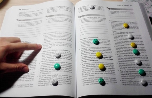 Nếu tất cả các quyển sách nhìn đều giống nhau, hãy viết tên môn học vào gáy sách hoặc đánh dấu chúng bằng các màu sắc khác nhau.