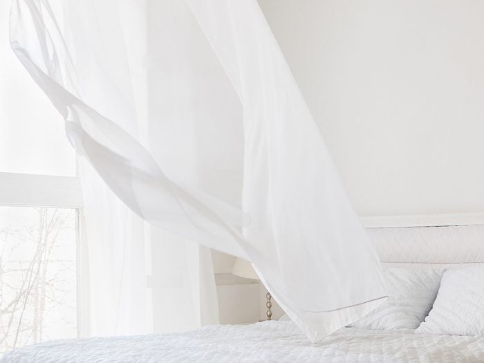 Đôi khi, việc mở tất cả các cửa sổ cũng không hiệu quả, trong trường hợp đó, hãy xịt nước lạnh lên một tấm vải và che phần cửa sổ đang mở. Làn gió sẽ thổi xuyên qua lớp vải ẩm và mát, có thể giúp ngôi nhà của bạn trở nên mát mẻ mà không cần điều hòa.