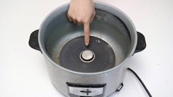 Thực chất, cách vệ sinh mâm nhiệt rất đơn giản. Sau khi lấy ruột nồi ra, bạn sẽ thấy ở giữa có một chiếc vòng tròn nhỏ trồi lên, đó chính là mâm nhiệt.