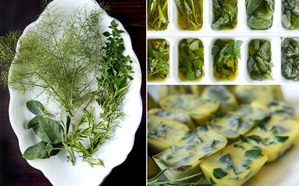 Cách làm: Rửa sạch các loại rau mùi, rau gia vị... rồi cắt nhỏ và trộn thêm một chút dầu ô liu sau đó cho hỗn hợp này vào khay đá tủ lạnh. Khi nấu ăn, bạn chỉ cần lấy viên đá chứa loại rau gia vị mình cần rồi thả vào món ăn.