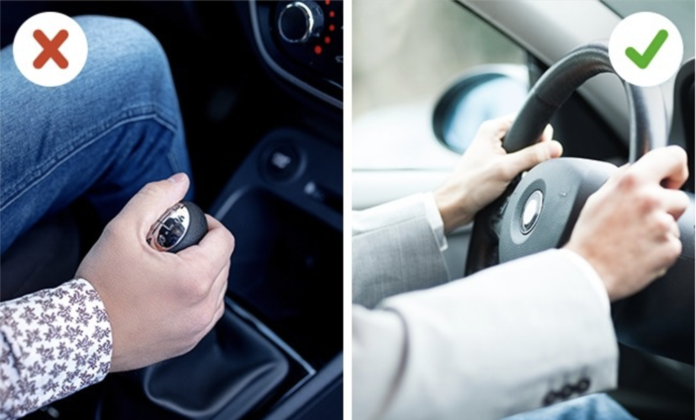 Đây là thói quen hoàn toàn không tốt vì khi gặp những tình huống bất ngờ, người lái sẽ không kịp đưa tay lên vô-lăng để đánh lái, chưa kể nhiều chị em còn thường bị cuống trong khi xử lý tình huống, dẫn tới việc có thể khua khoắng nhầm, vô tình lại chuyển sang số khác.