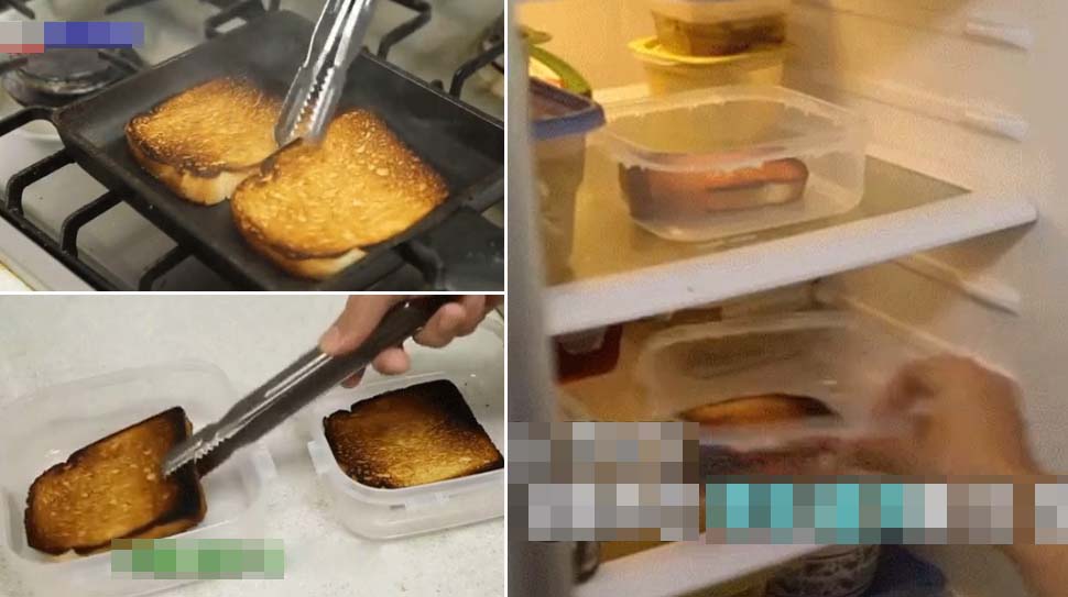 - Bánh mì cắt lát và cho vào lò nướng hoặc nướng bằng chảo trên bếp đến cháy khét. Sau đó cho bánh vào hộp nhựa không đậy nắp và đặt vào tủ lạnh. Bánh mì sau khi nướng cháy khét sẽ có thành phần carbon giống như than củi thoát ra qua các lỗ bánh nên có tác dụng khử mùi tủ lạnh hiệu quả.