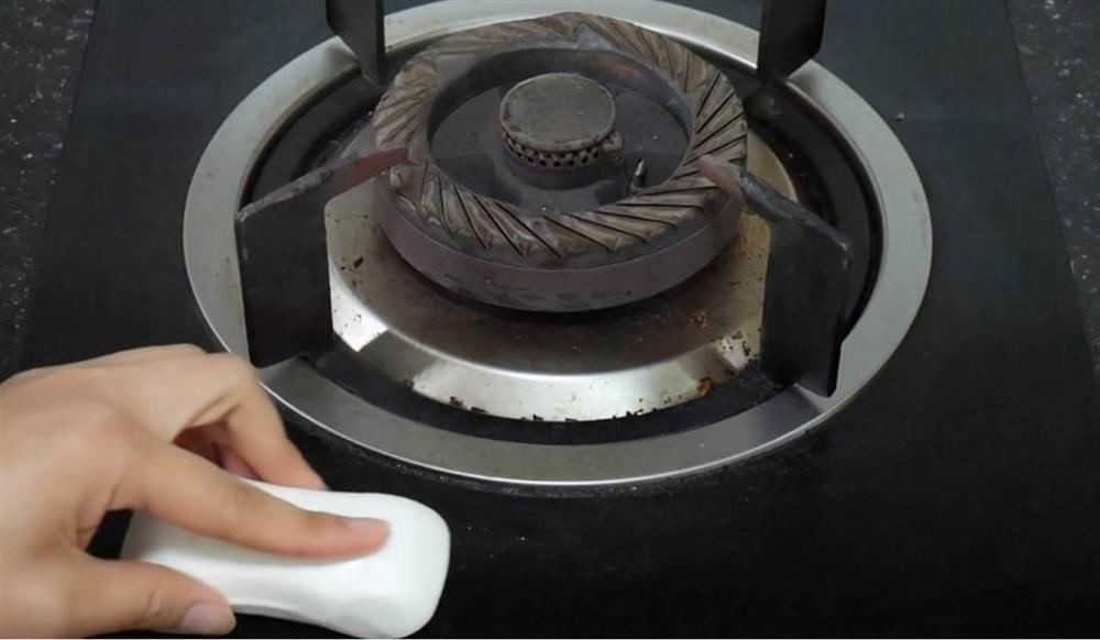 Cách làm: Di chuyển miếng xà phòng xung quanh sao cho phủ kín hết bề mặt bếp gas, nhất là khu vực xung quanh kiềng. Xà phòng sẽ có tác dụng tạo thành một lớp màng bảo vệ bề mặt bếp, ngăn sự tạo thành các cặn bẩn do quá trình đun nấu tạo ra nên khi cọ rửa sẽ tiết kiệm được thời gian và công sức hơn.