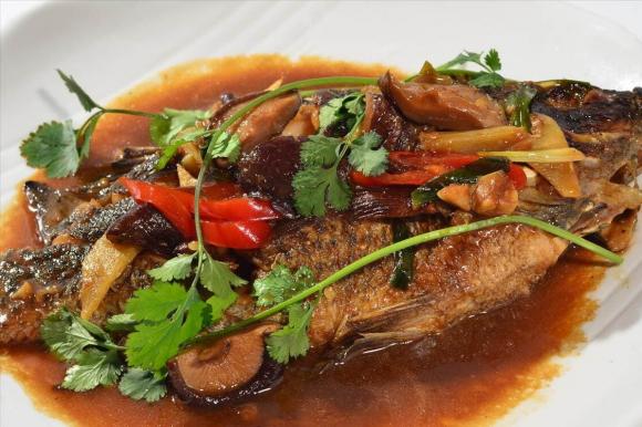 2. Tiếp theo, đun nóng dầu trong chảo rồi cho cá vào chiên vàng đều hai mặt. Tiếp theo, để cá sang một bên, cho gừng và tỏi vào chảo, phi thơm rồi cho xì dầu nhạt, một lượng muối thích hợp, sau đó đổ nước vừa đủ vào ninh nhừ.