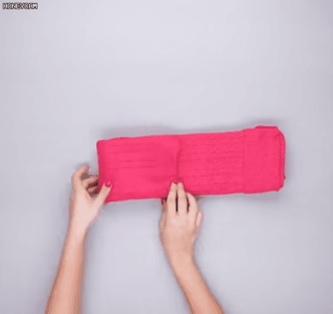 Bước 3: Gập đôi chiếc áo len lại hai lần, sau đó lật ngược phần uốn cong phía dưới để quấn áo len một nửa.