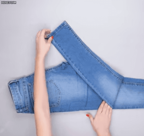 Bước đầu tiên: Gấp ống quần, sau đó cuộn chúng từ trên xuống dưới.