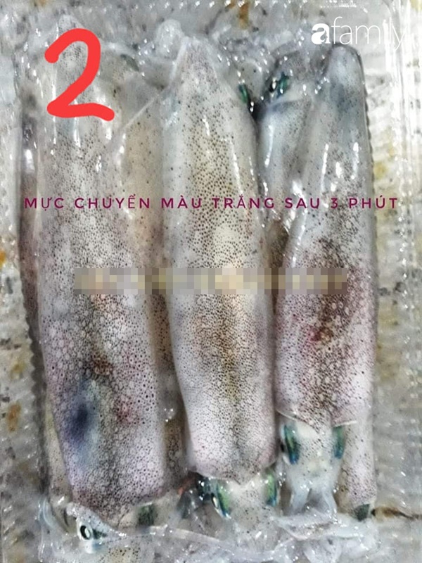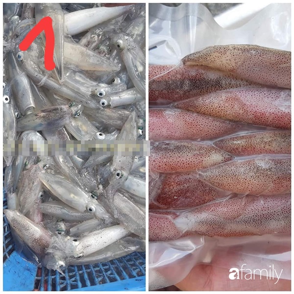 Bằng cách này, một con mực có trọng lượng 1kg sẽ hút nước thành khoảng 1,5-1,7kg. Các chị em mua dính loại mực này khi xào các tế bào sẽ co lại, nước chảy ra đầy chảo. Nước mực tươi cấp đông khô thì sẽ không có hiện tượng này xảy ra".