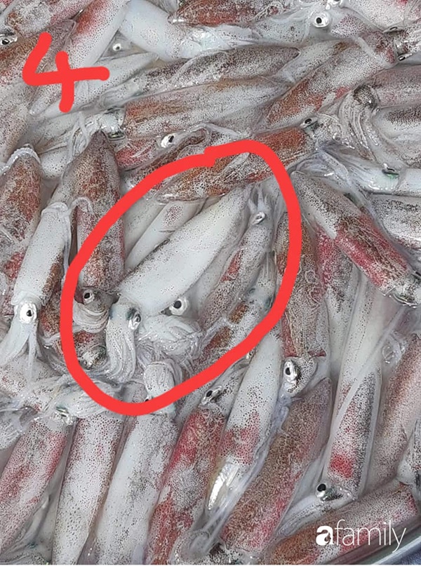 Chị Thanh Phương cho biết: "Chị em khi mua mực ống cứ để ý mắt mực, râu mực và đốm trên mực là xác định được độ tươi, ngon. Mực tươi có đốm màu nâu đen, mực kém có đốm màu tím đỏ. Cần để ý thêm màu da ở thân và ở đầu xem có giống nhau, thịt có độ trong, mắt sáng, da đỏ tươi (nháy đỏ) hoặc trắng (nháy nâu).