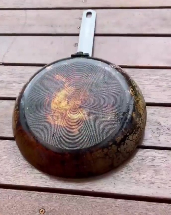 Cách làm sạch chảo rỉ sét cực đỉnh của bà nội trợ Kate Kulniece ở Mỹ. Nguồn: Tiktok ramdeep.osahan.