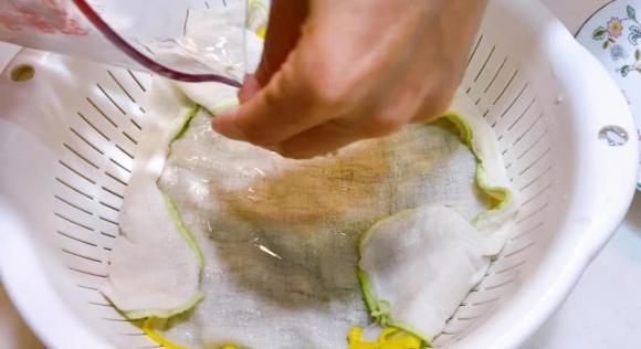 - Dùng thêm một chiếc khăn thấm nước để đậy lên trên. Sau đó dùng 1 cái đĩa đè lên trên khăn.