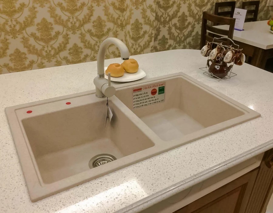 Cách làm sạch bồn rửa nhà bếp màu trắng
