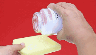 Cách làm: Tạo một lỗ nhỏ trên miếng bọt biển, sau đó cho xà phòng vào.