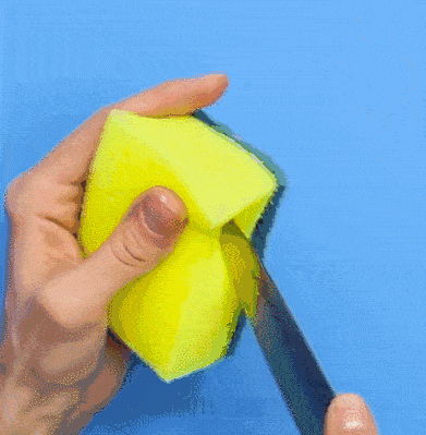 Cách làm: Dùng dao rạch một đường ở mặt bên của miếng bọt biển.
