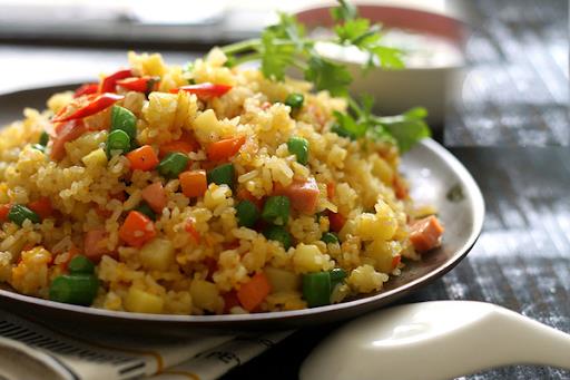 Cơm chiên là món không kén nguyên liệu đi kèm, hải sản, thịt, rau củ, đậu đều ngon hết.