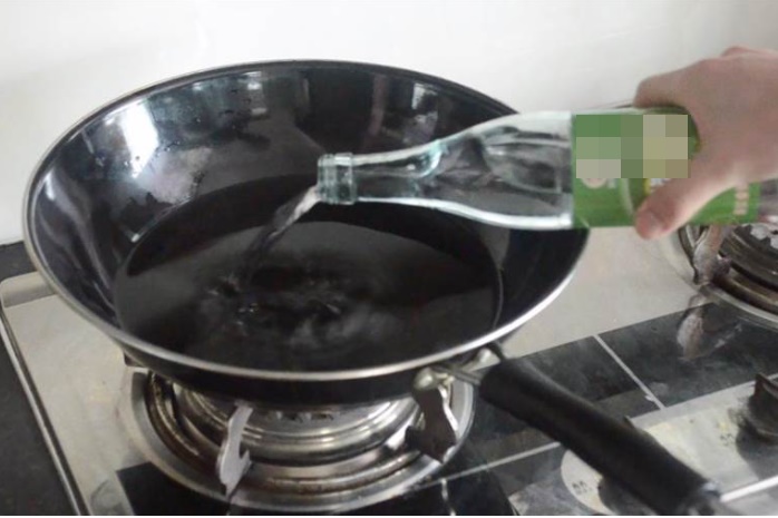 Tiếp theo, bạn chuẩn bị một nửa nồi nước và đổ thêm một ít giấm trắng vào. Giấm trắng không chỉ có tác dụng khử trùng, diệt khuẩn mà còn có tác dụng làm mềm vết bẩn hiệu quả.