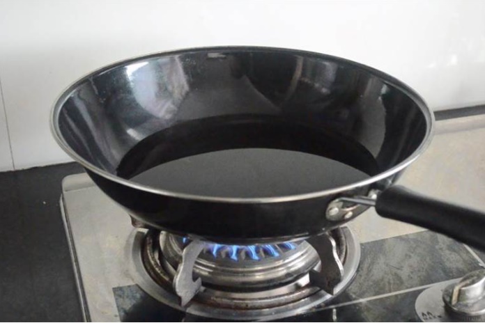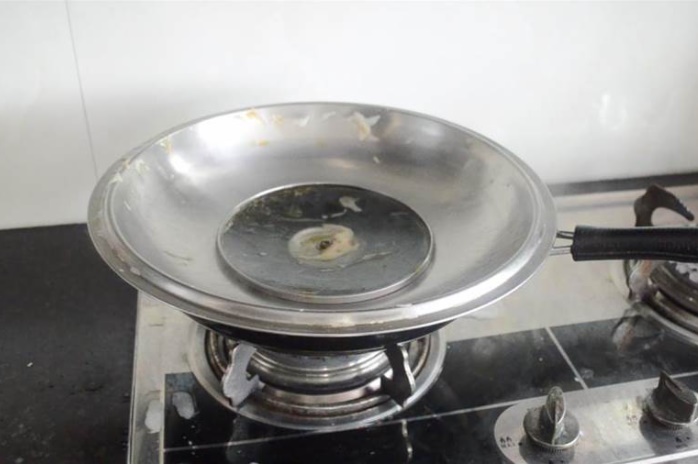 Duy trì đun lửa lớn trong khoảng 3 phút rồi điều chỉnh nhiệt xuống thấp và tiếp tục đun trong 3 phút. Lúc này, bạn có thể thấy dầu và các vết bẩn bám bên trong nắp nồi về cơ bản đã được loại bỏ.