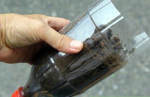 Lưu ý giá thể nên được đổ tầm ¾ của phần chai đựng không nên đổ đầy sẽ khiến rau sau này phát triển mọc ngay trên bề mặt không được cứng cáp và cũng lãng phí giá thể. San phẳng giá thể ra đều chai và không được ấn chặt mà phải tạo độ tơi xốp cho giá thể.