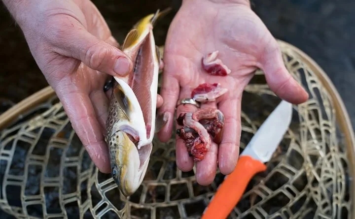 Với những con cá lớn mà ruột được giữ lại để ăn, bạn cần loại bỏ phần thức ăn chưa tiêu hóa bên trong và làm sạch.